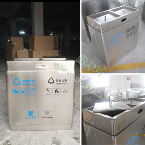 這批C185分類環(huán)保垃圾桶是采用304#優(yōu)質(zhì)不銹鋼材料模壓成型,厚度足1.2mm,里面配置了厚度為0.4mm的鍍鋅板內(nèi)桶,堅(jiān)固耐用,不易破損。垃圾桶外觀為方形,閃爍著金屬的亮澤,高雅美觀,在制作方面也有精良的做工,注重細(xì)節(jié)的處理,做到無利口,不傷手! 桶身雙分類,正面絲印有“不可回收”和“其他垃圾”的分類標(biāo)志,具有耐火安全,抗高低溫,適合各種惡劣氣候條件,再加上產(chǎn)品表面光滑,亮麗廣泛適用于各種場(chǎng)所,是電梯口、寫字樓、學(xué)校、物業(yè)、賓館、酒店、機(jī)場(chǎng)、汽車站等擺放場(chǎng)地的首選。