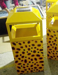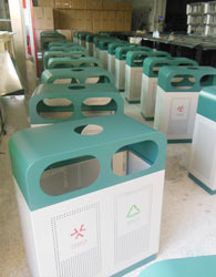 鋼制垃圾桶桶身及頂蓋 采用電解鍍鋅鋼板為基材,防腐性能高于普通冷軋鋼板。該產(chǎn)品采用目前先進的應用于汽車制造領域的整體拉伸成型工藝,造型美觀、無焊接一次成型,堅固性強,是鋼板材質(zhì)的首選工藝。