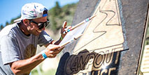 垃圾桶蓋當“畫筆” 美國藝術家木板上“燒出”畫作