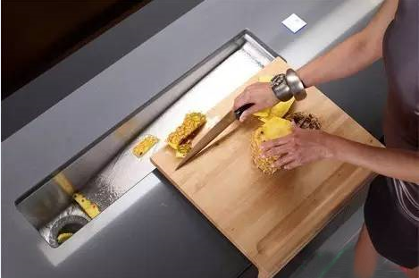 水槽是個整合的垃圾處理裝置,水槽采用了傾斜設(shè)計,垃圾會沿著斜坡下沉。另外,這個水槽還采用了靈活的觸摸技術(shù),清洗周期由固定不變的藍光顯示,垃圾處理周期由閃爍的藍光顯示。