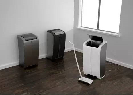 18升垃圾的垃圾桶這個苗條的垃圾桶可以容納18的垃圾,而且,前面那個掃把可以自動打掃房間,不適用的時候,掃把可以鉆到垃圾桶前下方的槽子里。很不錯的設(shè)計!