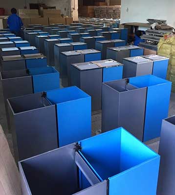 欣方圳商場(chǎng)分類垃圾桶本身經(jīng)噴砂處理去油去銹后,鋼板表面抗紫外線丙稀酸油漆多層噴涂。!