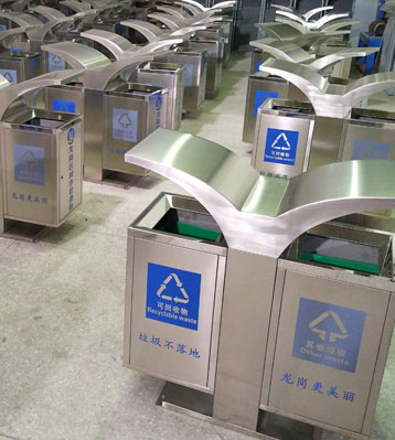 欣方圳展翅不銹鋼分類(lèi)垃圾桶批量生產(chǎn)圖