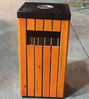戶外鋼木單桶垃圾桶頂細(xì)節(jié)圖