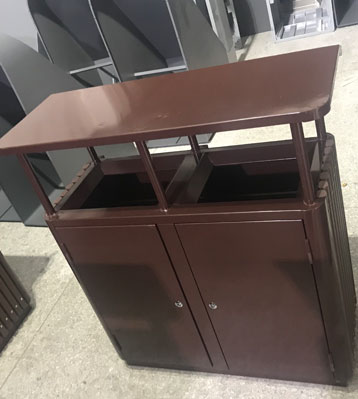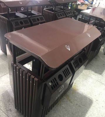 欣方圳景區戶外鋼木分類垃圾桶批量生產圖