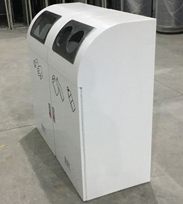 • 產品材質:欣方圳室內三分類垃圾箱果皮箱采用優質冷軋鋼材料經剪鈑下料、折彎、沖壓、焊接、打磨、等工藝:表面經過除油、噴砂防銹處理后,再進行酸洗磷化處理;表面清理干燥后整體進行靜電噴涂或烤漆處理,靜電噴涂是經過流水線高溫固化爐固化后再出爐冷卻,加工后的塑粉附著力強,不易剝落;