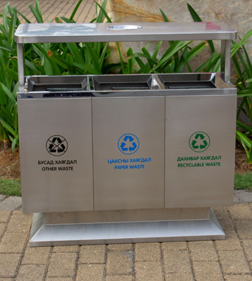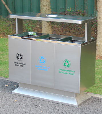 • 產品名稱:不銹鋼戶外三分類果皮箱