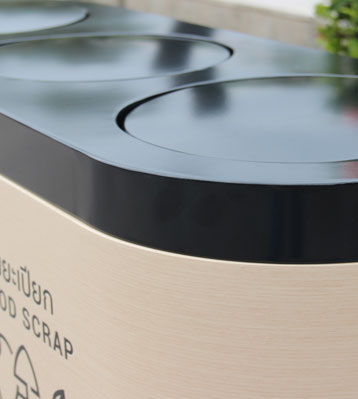桶頭與桶身合頁固定,三分類仿木紋垃圾桶一次打開可集中收運垃圾,焊點光滑平整,無利口整體美觀安全耐用!