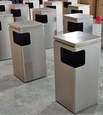 • 使用范圍:樓盤不銹鋼戶外垃圾桶表面光滑、亮麗,是樓盤、售樓部、電梯口、寫字樓、物業、賓館、酒店、機場等擺放的首選。
