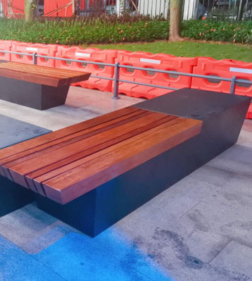 市政景觀提升工程不銹鋼戶外休閑排椅椅面原材料采用真空泵排除空氣、填充防腐液、加壓滲透、抽真空排出多余防腐液達到先進的防腐防蟲工藝。
