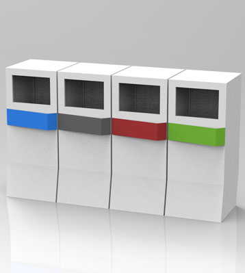 4分類果皮箱方形設計,采用不銹鋼材質焊接成型表面噴塑工藝制作而成,戶外防銹蝕效果提升50%。背面帶三角鎖開箱門收運垃圾,保障內桶防損壞!