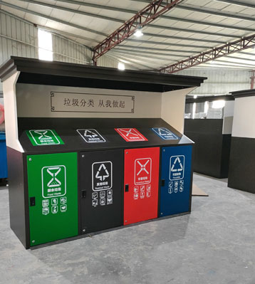 • 產品材質:城市花園小區大容量分類垃圾桶定點投放垃圾屋房站點整體尺寸制作需求可按地方標準要求定制,常用的制作材質有鍍鋅板、不銹鋼、戶外塑粉靜電噴涂,其工藝特點表現為較高的戶外適應性,表面涂層堅固,不易脫落,抗紫外線以及耐候性強。可回收物投口為藍色,其他垃圾為淺灰色,廚余垃圾綠色,有害垃圾為紅色,顏色搭配美觀,可配套洗手盆投放后清洗。.表面無毛刺、無披鋒,棱角和邊緣做圓角處理.