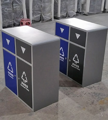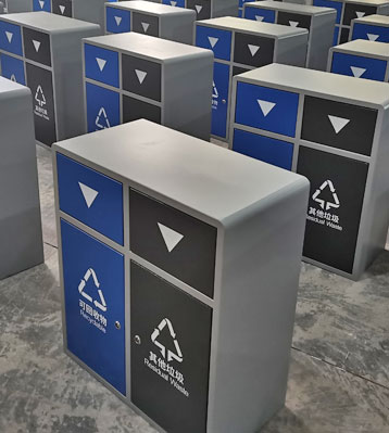 戶外推蓋垃圾桶金屬烤漆密閉分類垃圾箱批量生產(chǎn)圖
