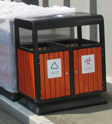社區戶外鋼木分類垃圾桶桶身細節圖